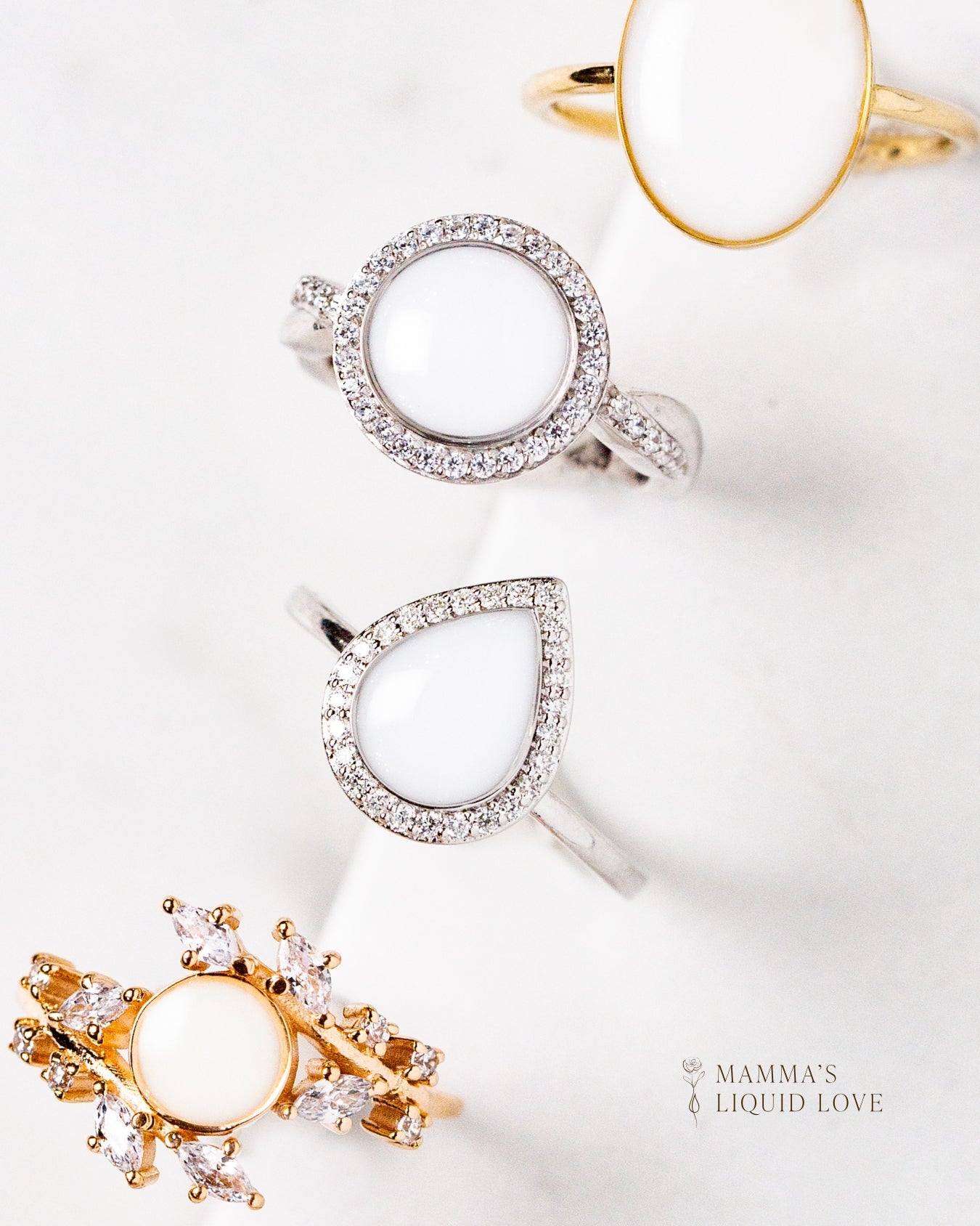 From breastmilk and hair to ashes, cord, and dried florals—each bezel is a space to hold what matters most.