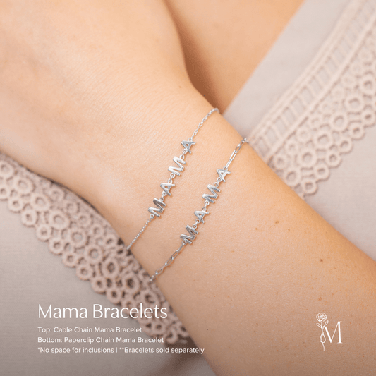 Customizable keepsake bracelets that can be made with your breastmilk to commemorate your breastfeeding journey.