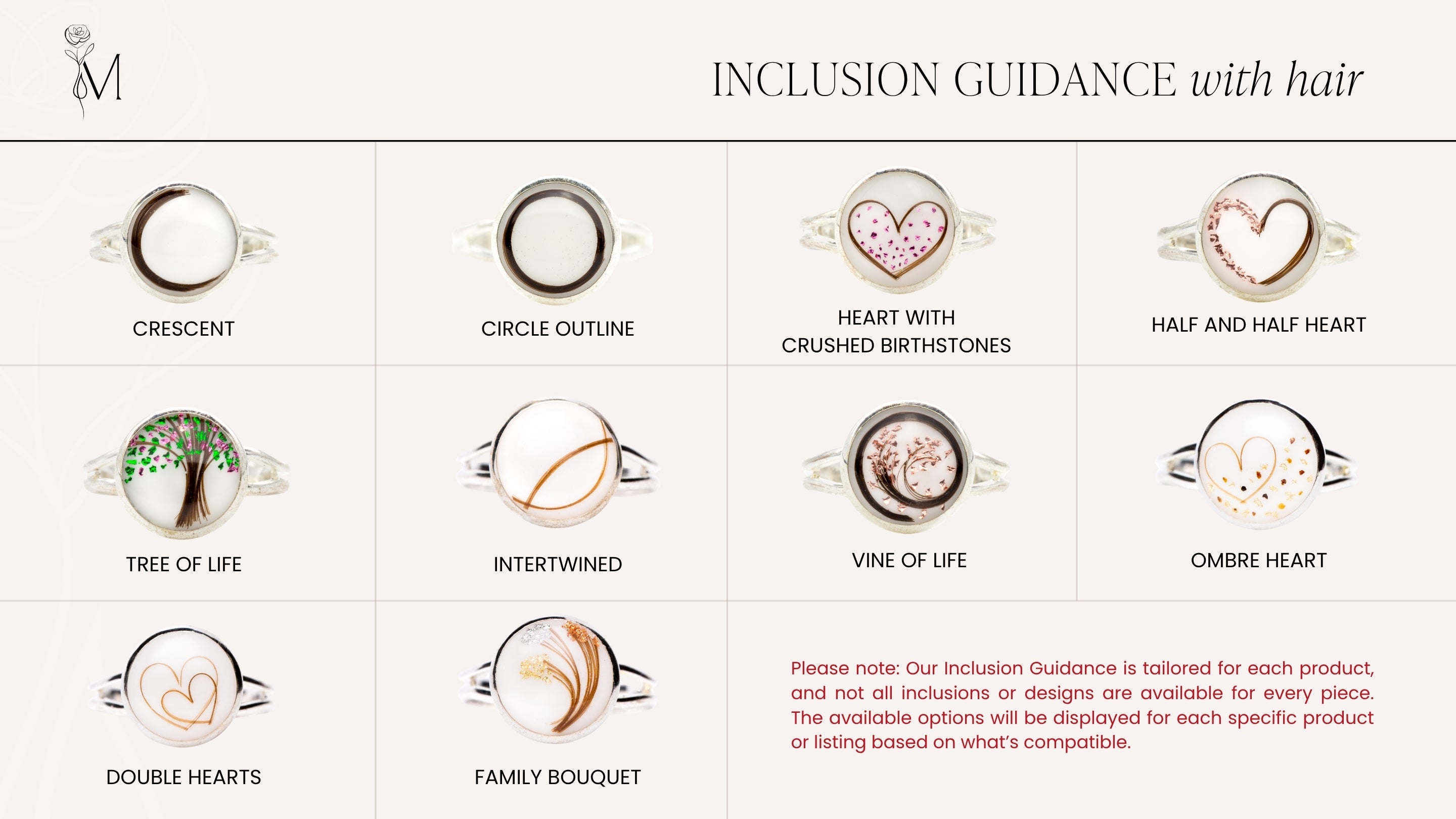 We have set styles you can choose from. We call them, "Inclusion Guidance," and they can be added through the listing options of your preferred keepsake.♡