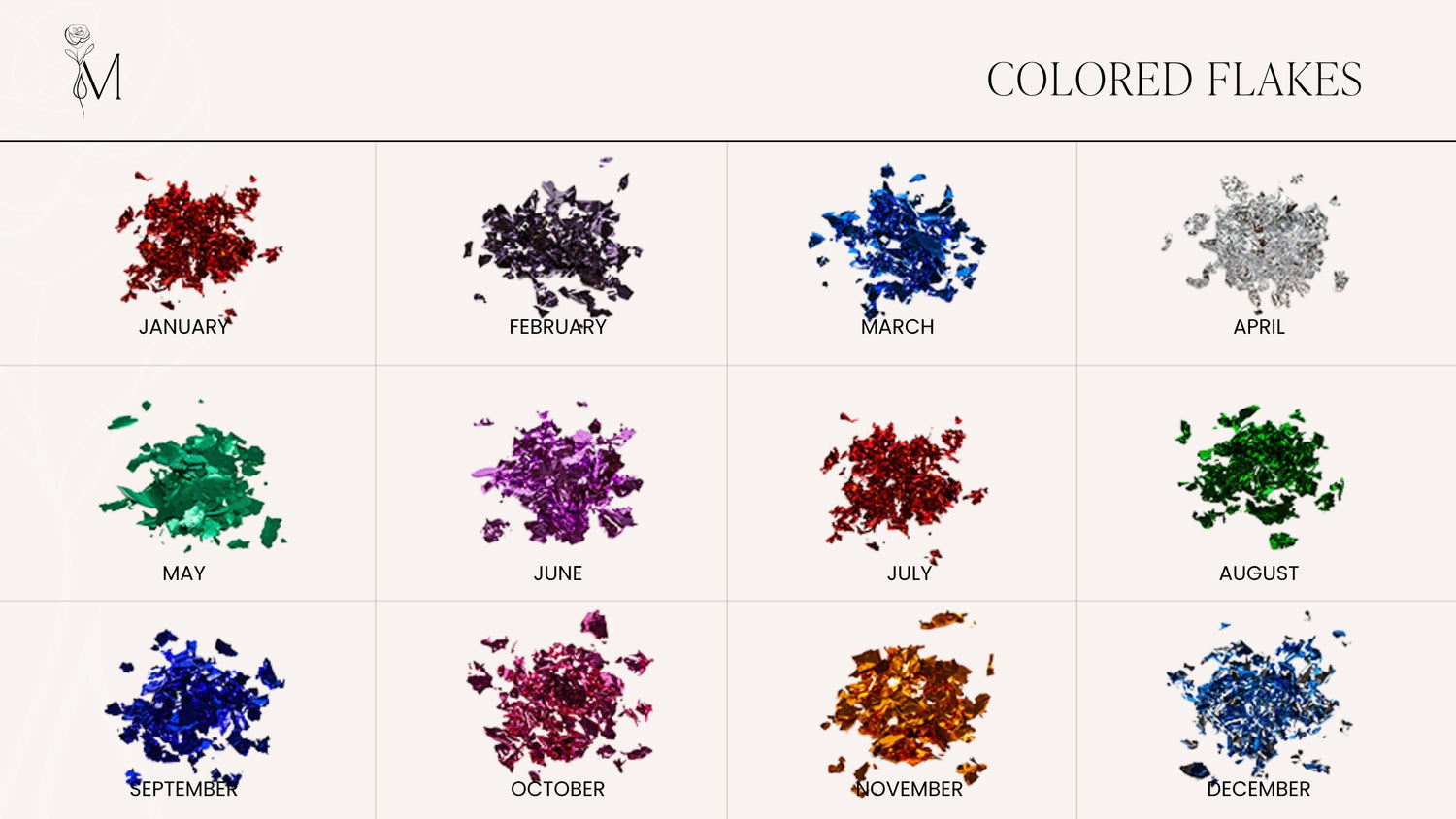 Shimmers, Flakes, Birthstones