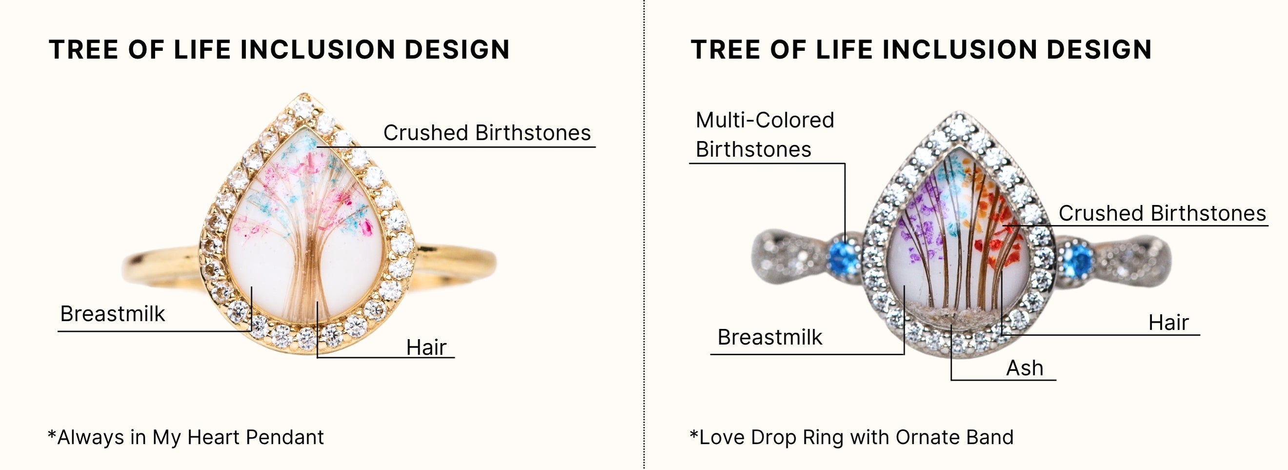 Absolutely. Whether it’s milk from two different feeding journeys, hair from multiple loved ones, or birthstones representing a whole family—many of our designs are made to hold and honor every layer of your story.